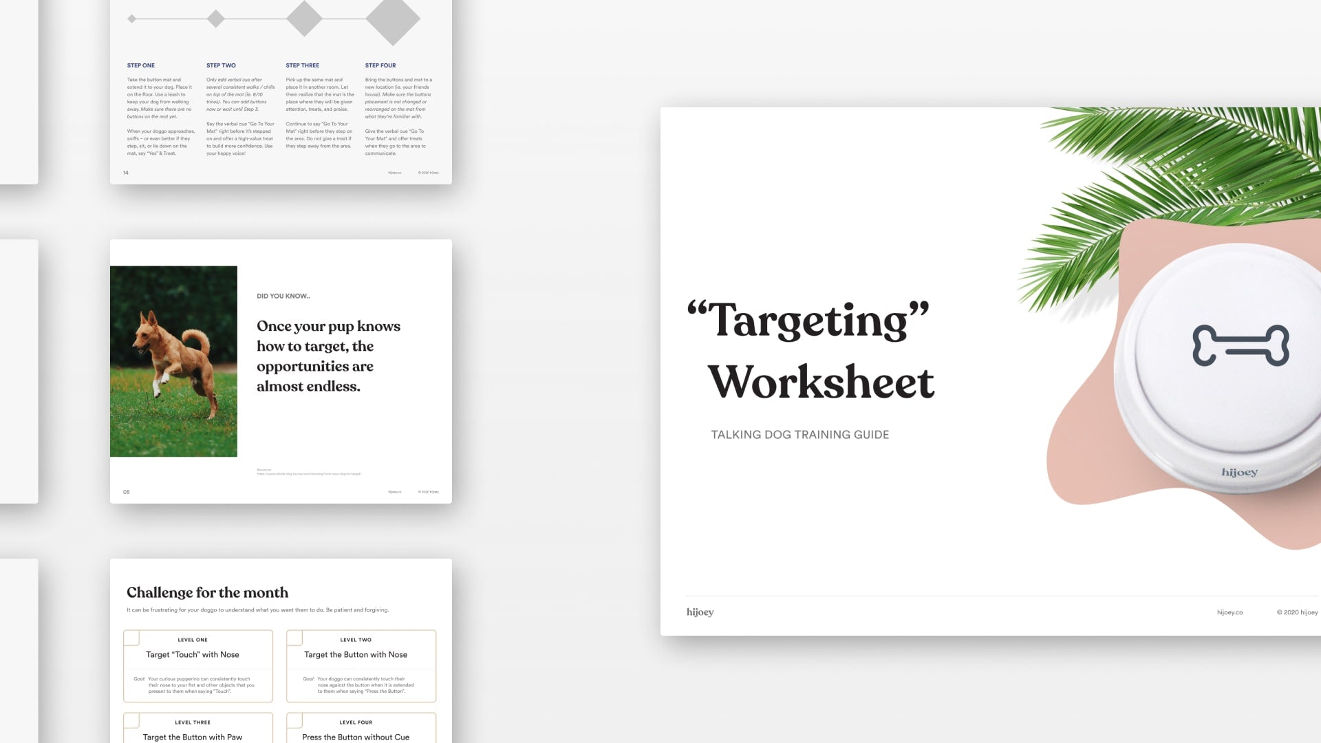 You’re already bought in. But you don't know if your dog will be strong enough to press the button with their paw. Don't bother spending hours trying to set up the buttons vertically against the wall. Make sure you go into your training feeling confident that your best friend can walk away in style. Use the Targeting Worksheet to give them strength today.